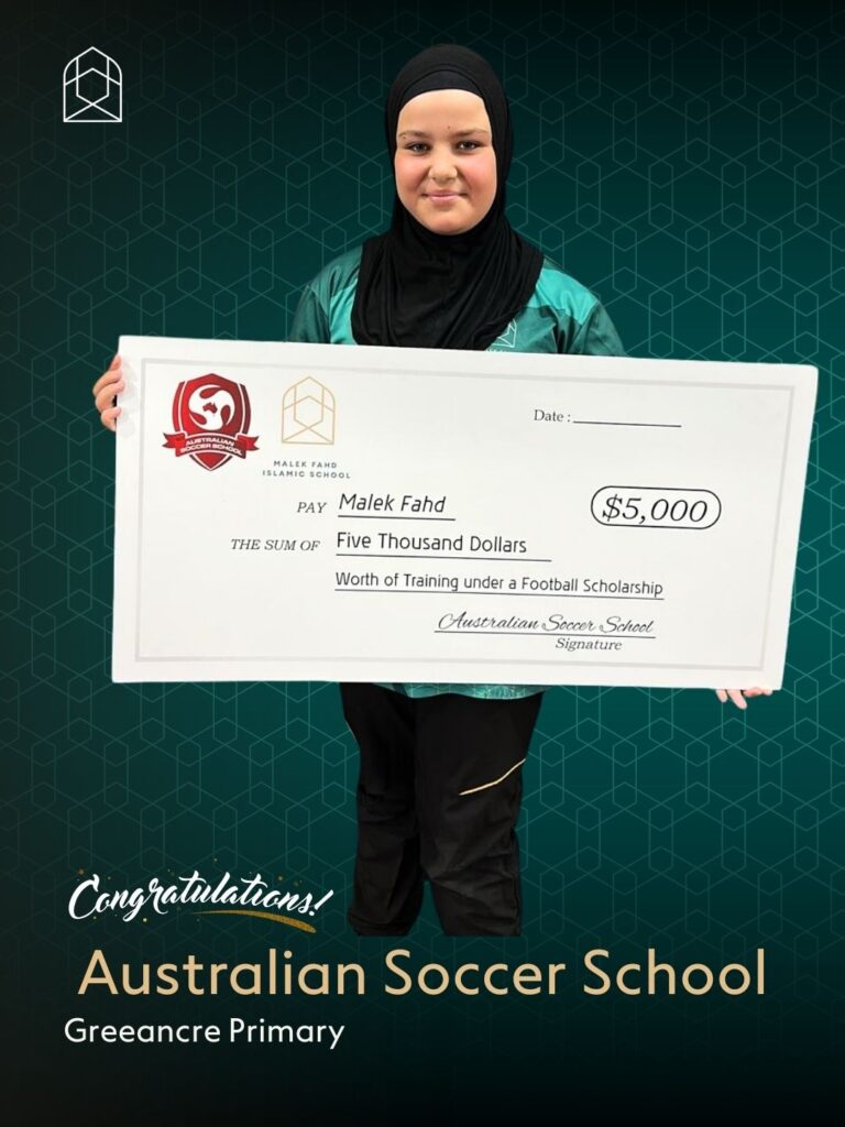 As part of our commitment to holistic education and supporting learners with a passion for sport, Medina has been awarded a $5,000 football scholarship with the Australian Soccer School. The scholarship provides free training for an entire year and includes the opportunity to travel overseas.